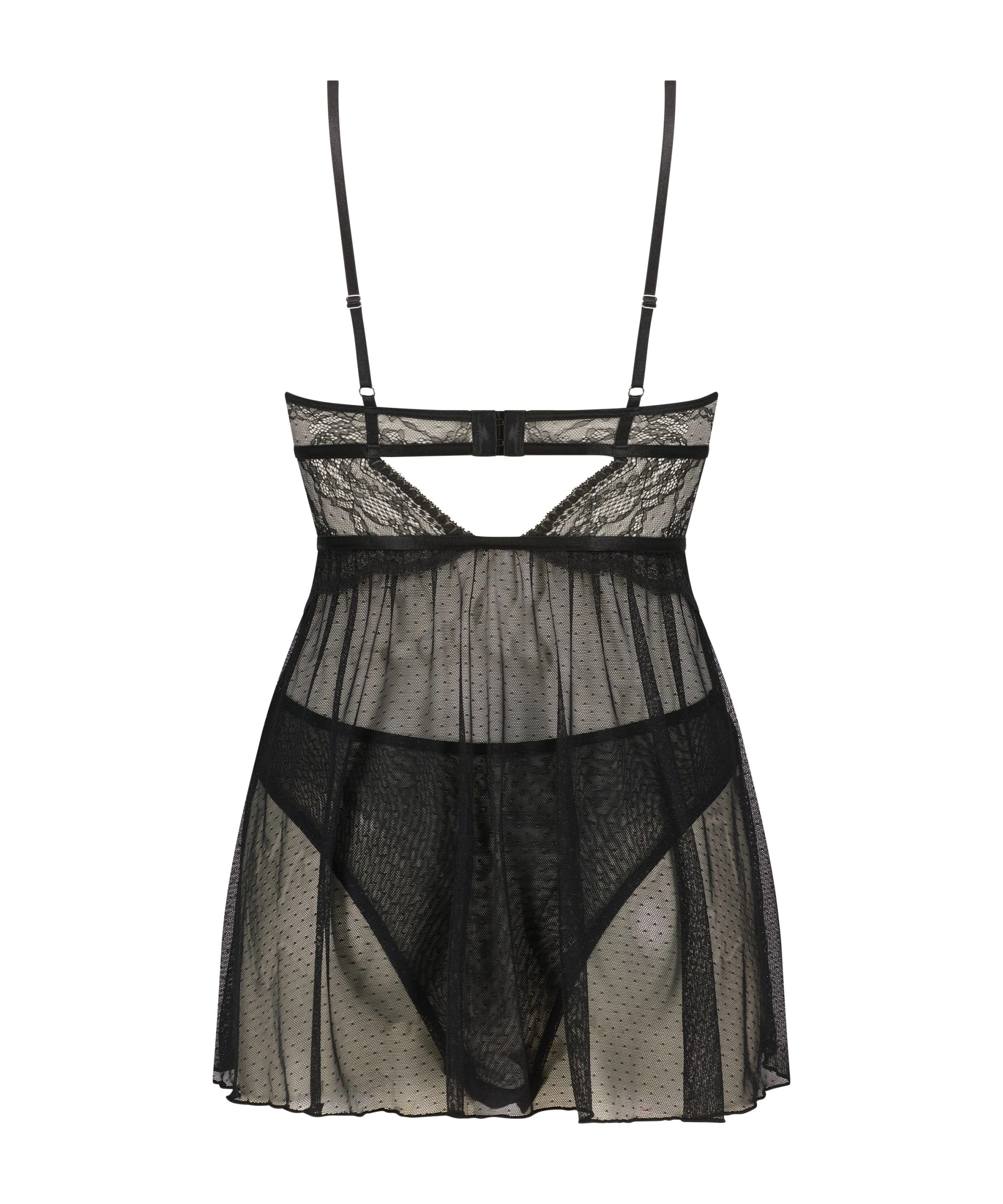 Fühle dich sexy in diesem umwerfenden Babydoll! Mit romantischen Allover-Spitzen-Look und Stäbchen im Vorder- und Rückenbereich für einen optimalen Halt, sowie Bügel-Cups. Ohne die dazu passenden Brazilian-Slips im Set zu vergessen!
