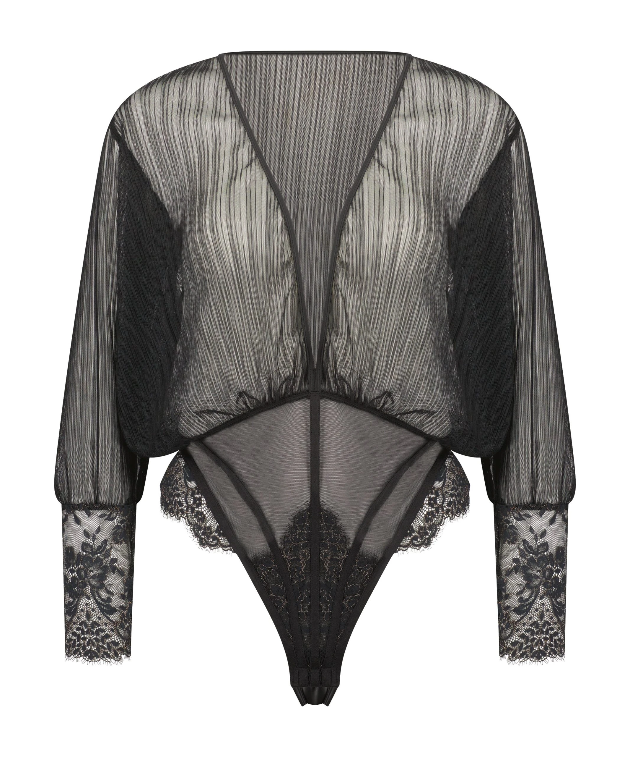 Fühle dich fabelhaft in diesem Bodysuit! Mit einem transparenten Look, damit du dich so sexy wie möglich fühlst. Mit Spitzendetails an den Ärmeln und an der Taille, gepaart mit Riemchendetails. Lass dir diese Gelegenheit nicht entgehen!
