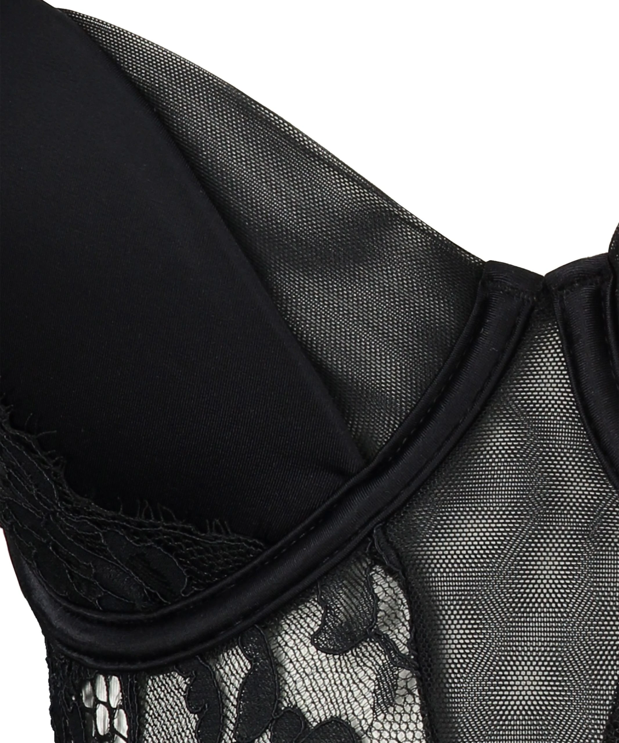 In diesem stylishen Body fühlst du feminin und selbstbewusst! Der Body ist mit Details aus Spitze und Netz versehen und lässt sich sowohl als Neckholder als auch in der herkömmlichen Passform tragen. Kombiniere ihn mit einem passenden Kimono aus der Noir Kollektion!