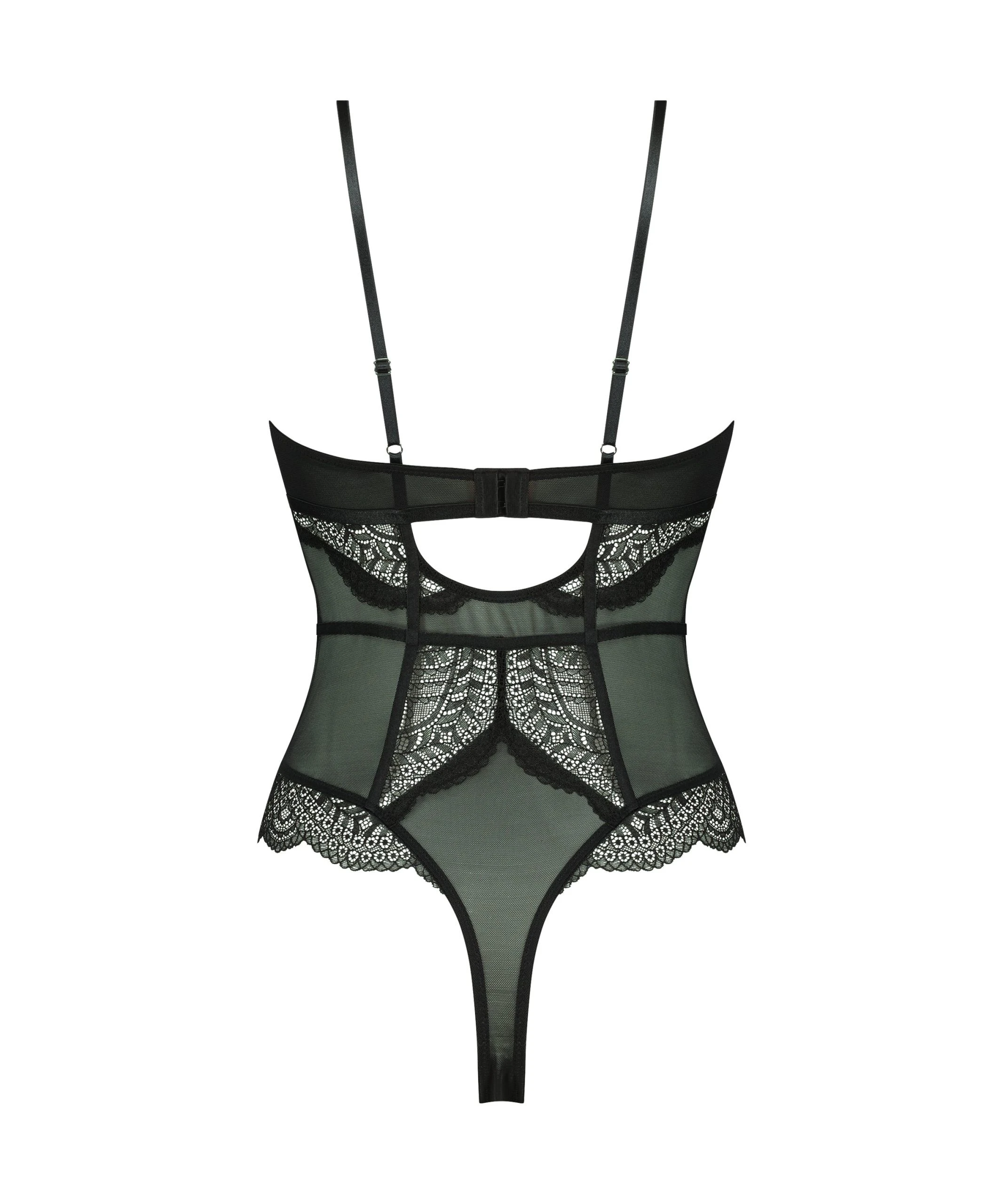 Fühle dich fantastisch in diesem unwattiertem Body! Er ist halbtransparent, mit vielen Spitzenverzierungen. Auf der Vorder- und Rückseite befinden sich Cut-Out-Details und sexy Riemchendetails. Kombiniere ihn mit einem Kimono für einen kompletten Look!