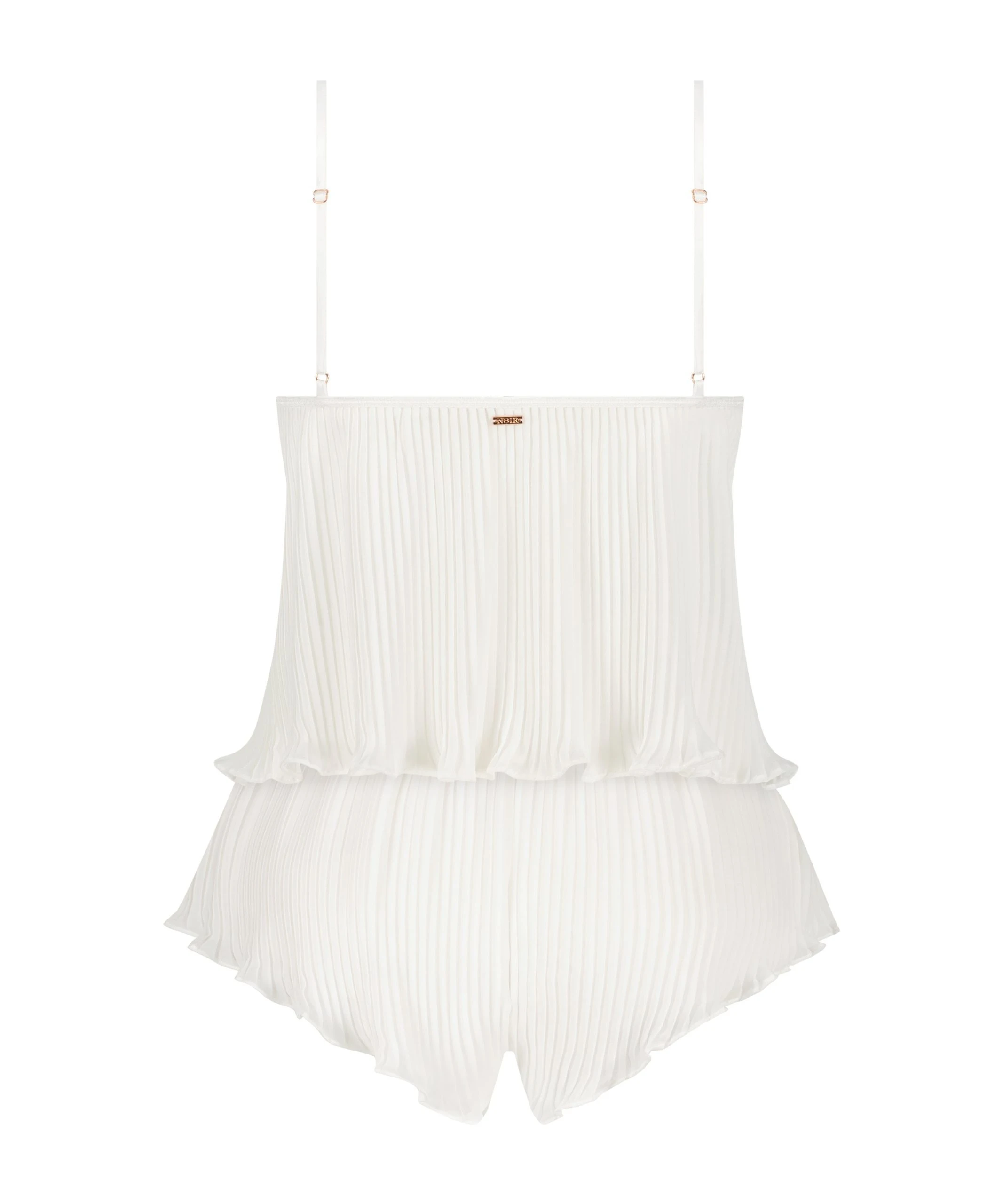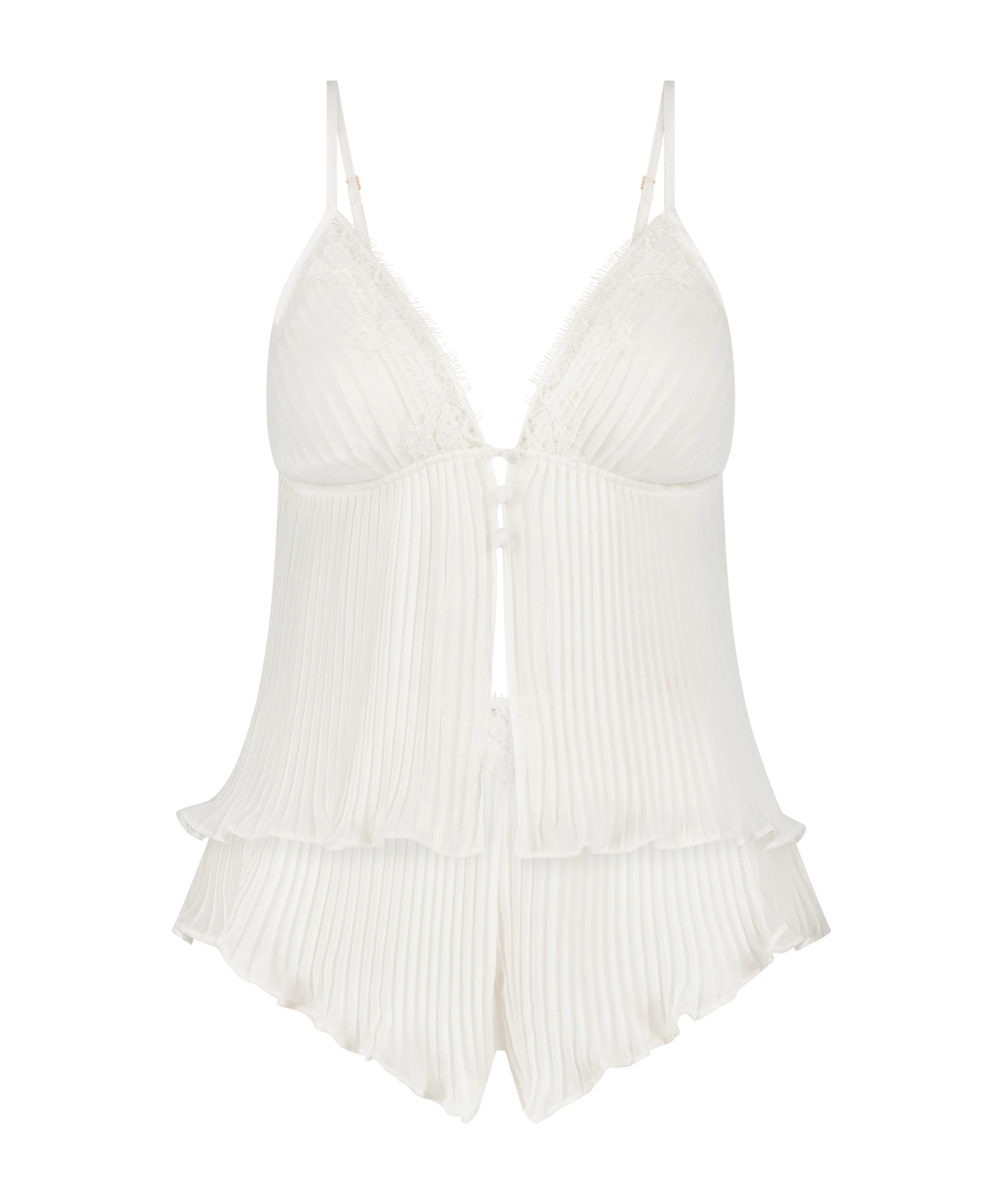 In diesem schönen Pyjama-Set wirst Du umwerfend aussehen! Dieses niedliche plissierte Cami-Set aus Chiffon ist aus Spitze gefertigt und hat dünne Spaghettiträger. Teil der Noir-Kollektion.