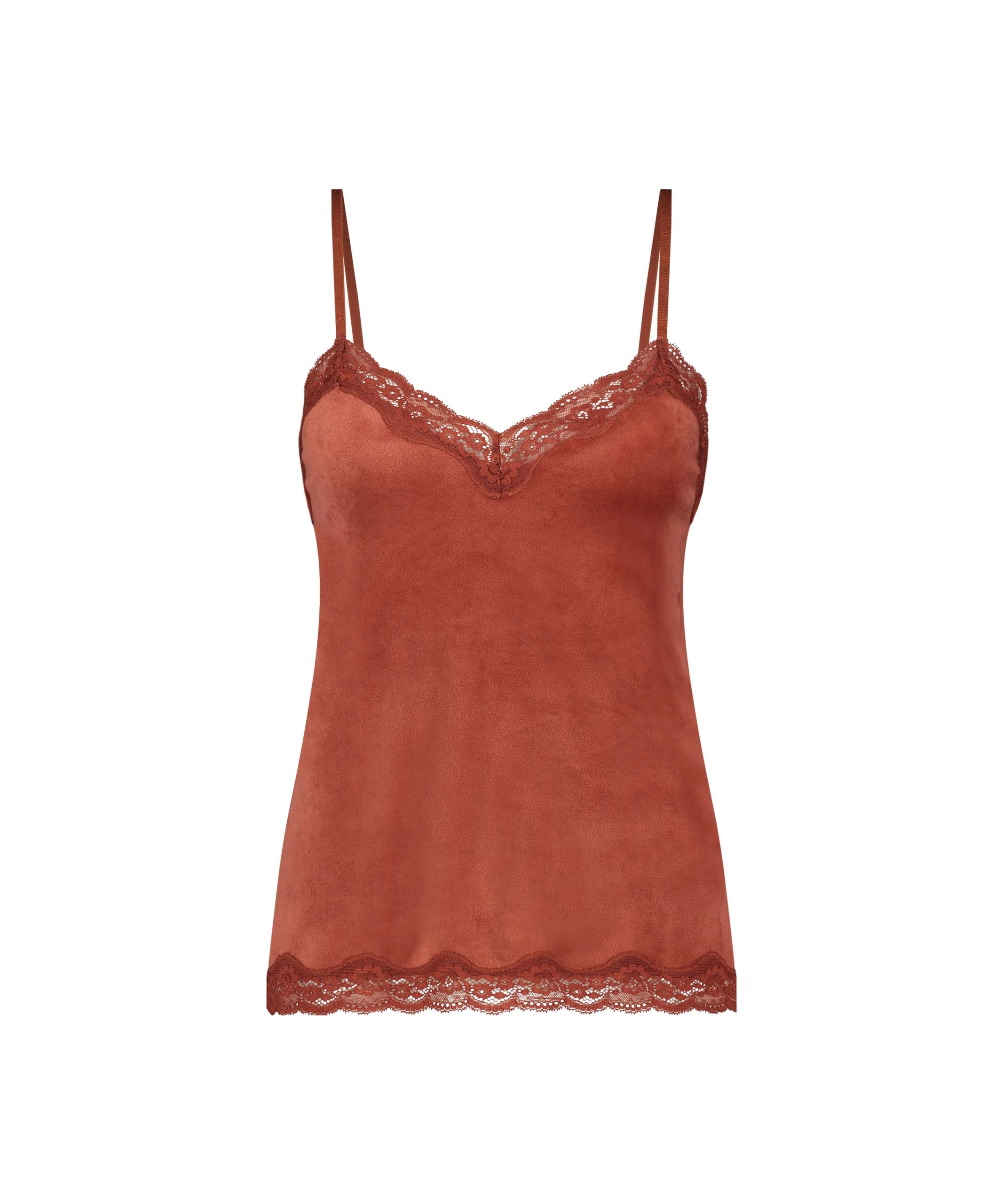 Dieses weiche Camiset sorgt für ein feminines, ultra-sexy Feeling! Das Oberteil besteht aus einem Veloursstoff und ist mit Spitze veredelt. Mit den passenden Artikeln kombinierbar.